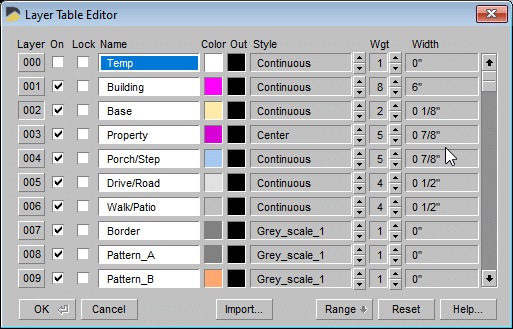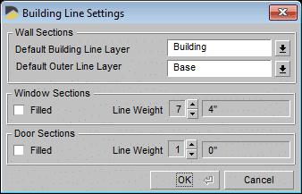 New installations of DynaScape Design will have building line defaults of weight 7 for window sections and weight 1 for doors to differentiate them visually.