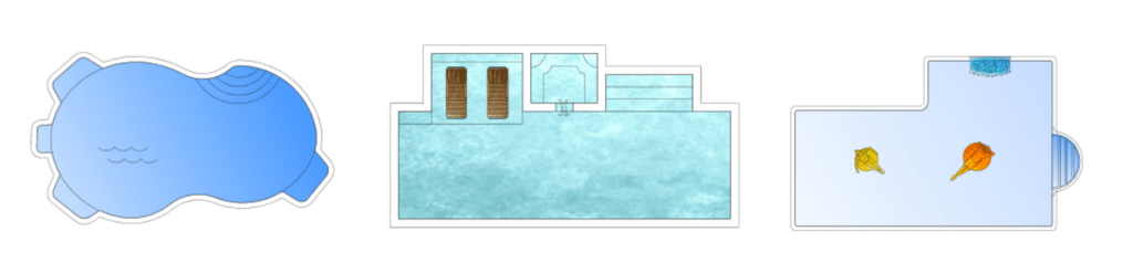 New modern and rectangular pool figures, along with a library of pool accessories containing spillways and new step options, and a library of people floating on pool mats and tubes.