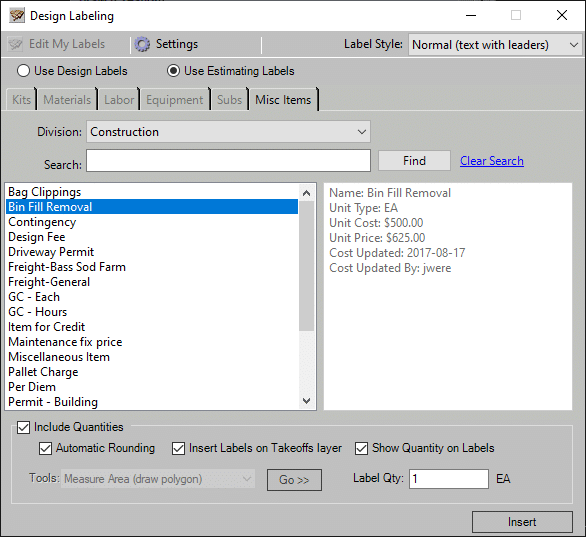 Costbook item information from Manage360 is now available in Design.