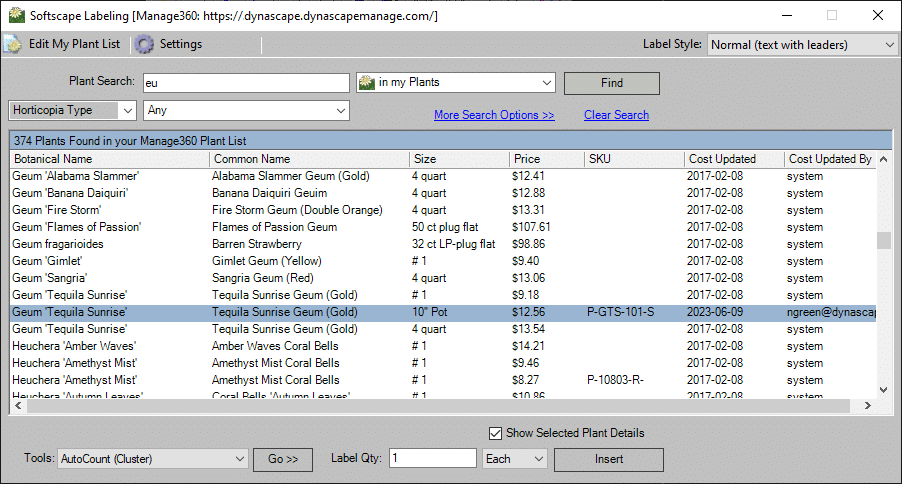 SKU has been added as an optional column when labeling from a custom plant list.